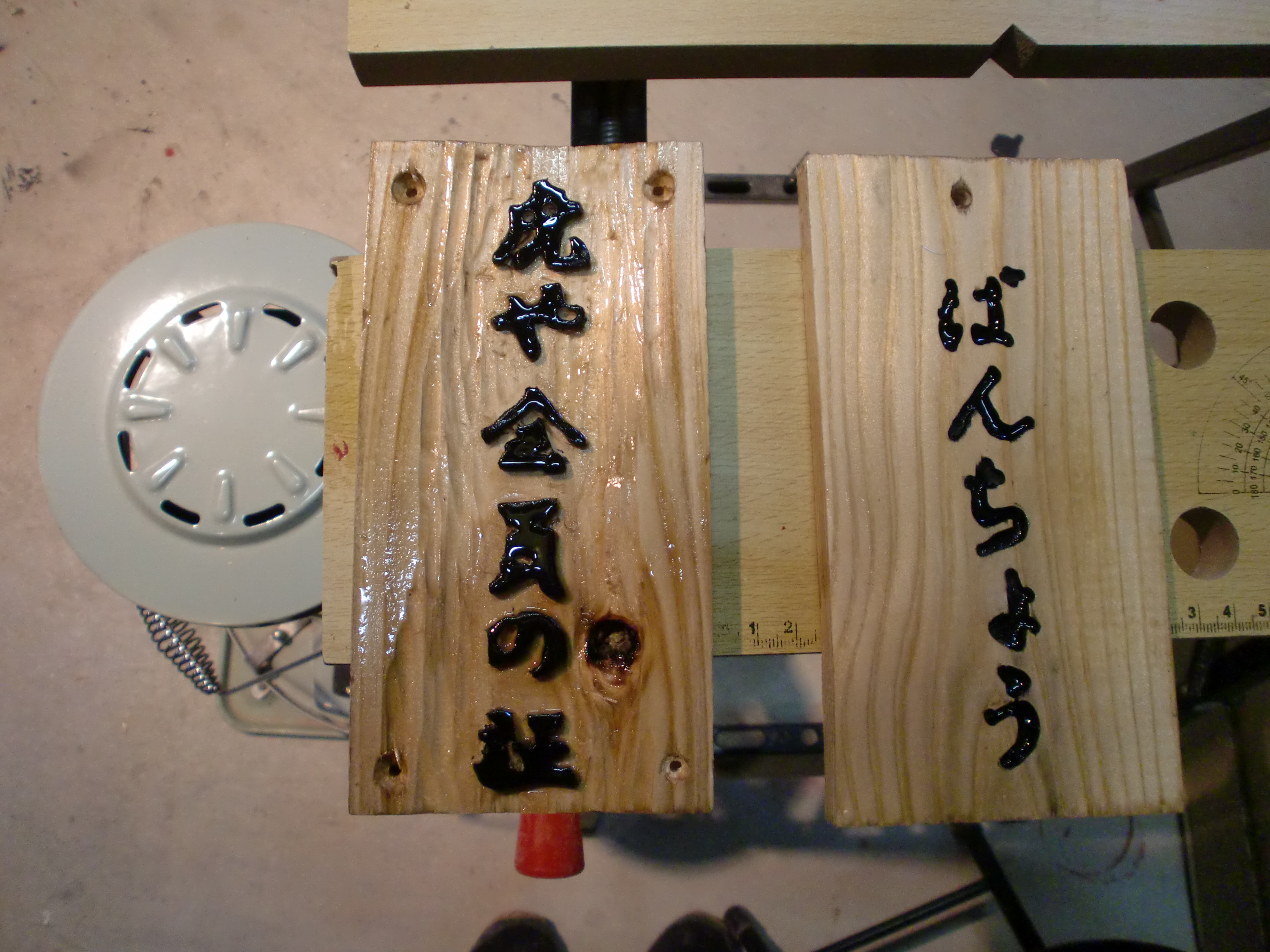 これは以前に書のパフォーマーが書いてくれた物をコピペして彫り込んだ物