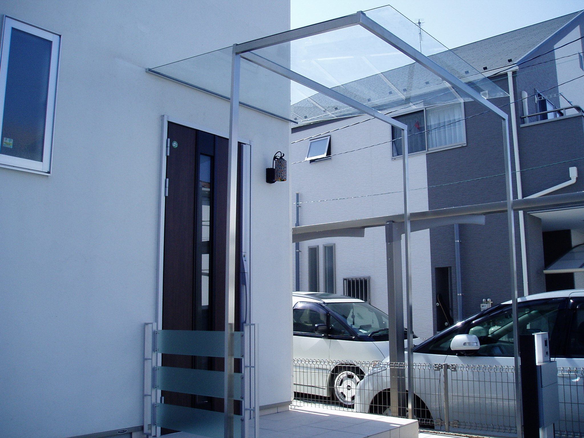松 calendar_today 2009年7月9日 社員の松っちゃん家、新築だけど庇が小さくて雨の日に役にたたない!と言うことでみんなで知恵を絞り写真の様なBIG庇を!!! さすが専門職の仕上げは綺麗ですネ~